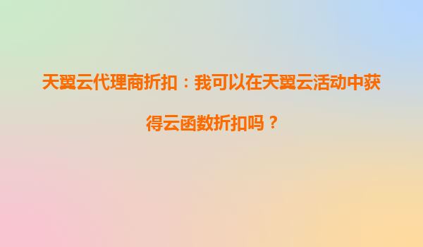 2025-09-20天翼云代理商折扣:如何在活动中获取云函数优惠? 一、天翼云的核心竞争优势 作为中国电信旗下的云计算服务品牌,天翼云凭借以下优势成为企业数字化转型的首选: 央企级安全保障-...