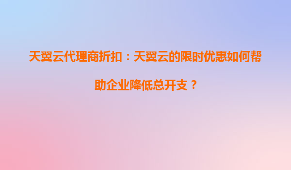 2025-09-20天翼云代理商折扣:如何利用限时优惠降低企业总开支? 在数字化转型的浪潮中,企业上云已成为提升效率、优化成本的必经之路。作为中国电信旗下的云计算服务品牌,天翼云凭借其可靠的性能、灵活的服务和多样化的优惠...
