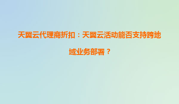 天翼云代理商折扣:天翼云活动能否支持跨地域业务部署? 一、天翼云的跨地域业务部署能力概述 天翼云作为中国电信旗下的云计算服务品牌,凭借其强大的基础设施和全球化布局,天然具备跨地域业务部署的能力...