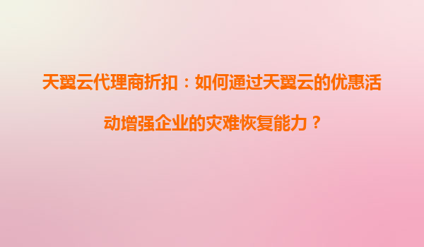 2025-09-18天翼云代理商折扣如何通过折扣活动提升云服务可靠性 一、引言 在数字化时代,云计算已成为企业IT基础设施的基石。天翼云作为中国电信旗下的云服务品牌,凭借其强大的网络资源和技术实力,为企业提...