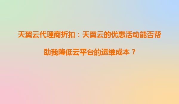 2025-09-18天翼云代理商折扣:天翼云的优惠活动能否帮助我降低云平台的运维成本? 一、引言 在数字化快速发展的当下,企业上云已成为一种趋势。然而,云平台的运维成本一直是企业关注的焦点。如何在不影响服...