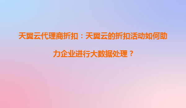 2025-09-18天翼云代理商折扣:天翼云的折扣活动如何助力企业进行大数据处理? 引言 在大数据时代,数据处理和分析已成为企业提升竞争力的关键。然而,高昂的云计算成本和...