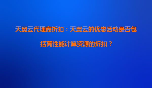 2025-09-17天翼云高性能计算资源的代理商优惠政策解析 云计算市场竞争日趋激烈,各大云服务商纷纷通过价格策略吸引企业用户。作为中国电信旗下核心云品牌,天翼云凭借其独特的资源优势和灵活的代理商政策,在高性能计算(HPC...