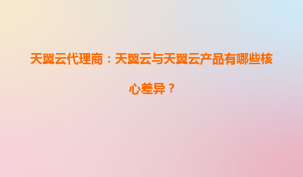 天翼云代理商与天翼云产品的核心差异及优势解析