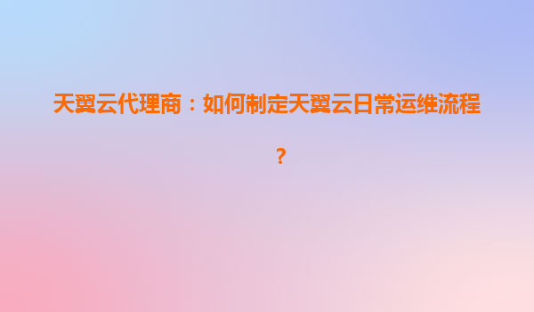 天翼云代理商:如何制定天翼云日常运维流程?