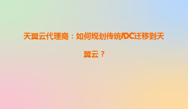 天翼云代理商:如何规划传统IDC迁移到天翼云?