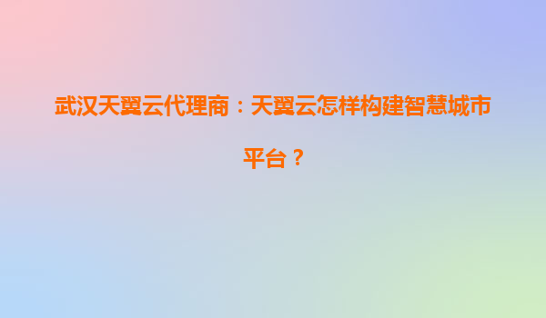 携手武汉天翼云代理商,共筑智慧城市新未来——天翼云构建智慧城市平台全解析