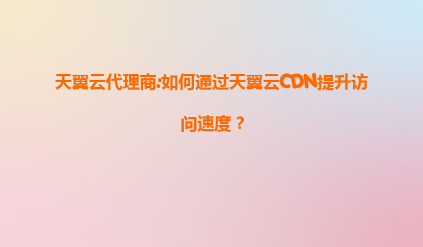 天翼云代理商:如何通过天翼云cdn提升访问速度?