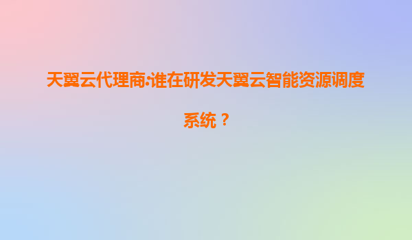 天翼云代理商:谁在研发天翼云智能资源调度系统?