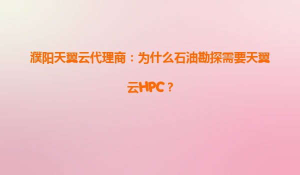 濮阳天翼云代理商:为什么石油勘探需要天翼云HPC?