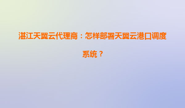湛江天翼云代理商:如何高效部署天翼云港口调度系统