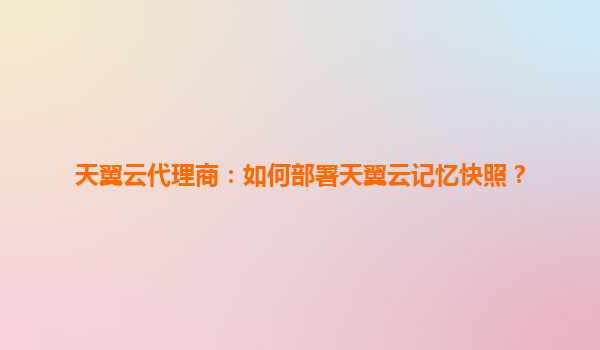 天翼云记忆快照功能解析与部署指南
