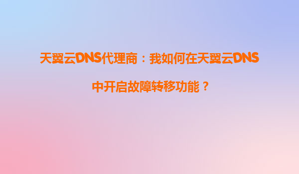 天翼云DNS代理商指南:如何开启天翼云DNS故障转移功能