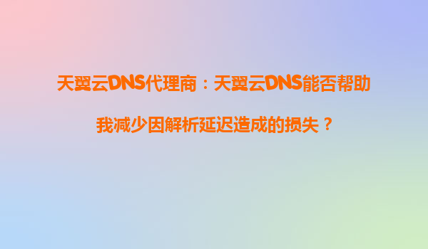 天翼云DNS代理商:天翼云DNS能否帮助我减少因解析延迟造成的损失?
