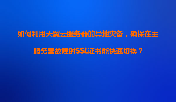 如何利用天翼云服务器的异地灾备实现SSL证书快速切换