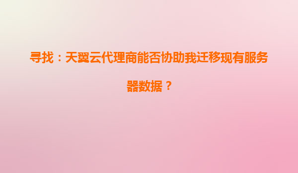 天翼云代理商:您服务器数据迁移的专业帮手