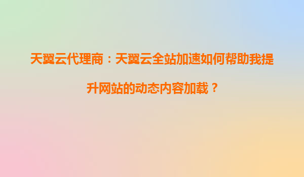 天翼云代理商:天翼云全站加速如何帮助提升网站动态内容加载? 引言 在当今数字化时代,网站的加载速度直接影响用户体验、搜索引擎排名和业务转化率。特别是在动态内容(如个性化推荐、实时数...