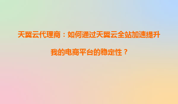 2025-09-16天翼云代理商:如何通过天翼云全站加速提升我的电商平台的稳定性? 一、电商平台稳定性的核心挑战 在数字化时代,电商平台的稳定性直接影响用户体验和业务转化率。常见的挑战包括: 高并发访...