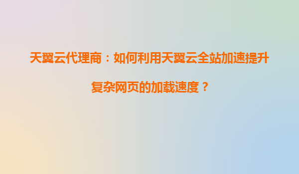 2025-09-05天翼云代理商:如何利用天翼云全站加速提升复杂网页的加载速度? 一、复杂网页加载速度的挑战 随着互联网技术的快速发展,现代网页越来越复杂,包含大量动态内...
