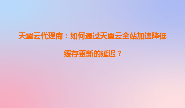 2025-09-05天翼云代理商:如何通过天翼云全站加速降低缓存更新的延迟 引言 在数字化转型的今天,企业对于网站和应用的访问速度和稳定性要求越来越高。延迟问题和缓存更新...
