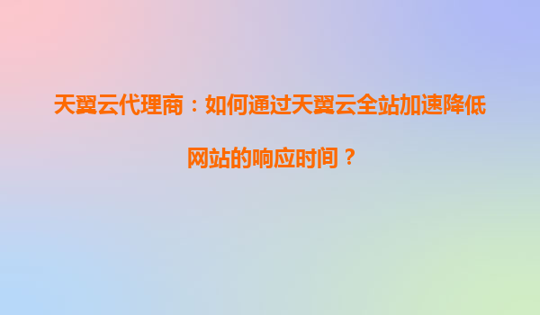 天翼云代理商指南:如何配置全站加速缓存策略以提升业务性能 一、天翼云全站加速的核心优势 天翼云作为中国电信旗下的云计算服务品牌,其全站加速(Enterprise...