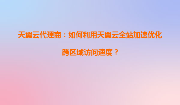 2025-09-03天翼云代理商如何利用全站加速优化跨区域访问速度 跨区域访问的挑战与天翼云的解决方案 随着企业业务范围的不断扩大,跨区域访问已成为常态。然而,地理距离带来的网络延迟、带宽限制以及不同运营商之...