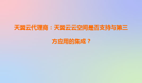 天翼云代理商:详解天翼云云空间的第三方应用集成能力与核心优势 一、天翼云云空间对第三方应用集成的支持 作为中国电信旗下核心云计算服务品牌,天翼云云空间通过开放API和标准化协议,全面...