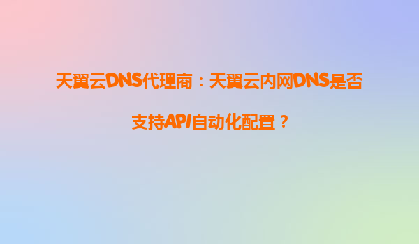 2025-08-30天翼云DNS代理商:天翼云内网DNS的API自动化配置能力解析 一、天翼云内网DNS的核心优势 作为中国电信旗下的云计算服务品牌,天翼云凭借其强大的基础设施和央企背景,在DN...