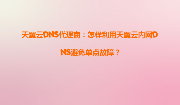 利用天翼云内网DNS实现高可用架构,规避单点故障 企业数字化转型中的DNS核心地位 在云计算时代,域名解析服务(DNS)作为网络基础设施的"神经中枢",其稳定性直接影响业务连续性。传统自建DNS服务器常面临...