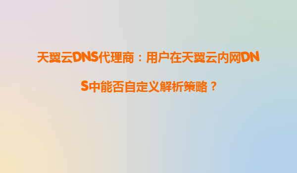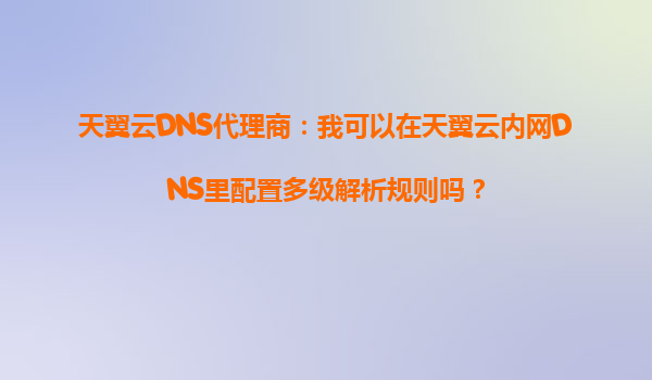 2025-08-29天翼云DNS代理商:解析多级配置与云端优势解析 一、天翼云内网DNS的多级解析能力 作为天翼云DNS代理商,许多用户常问到一个核心问题:是否支持在内网DNS中配置...