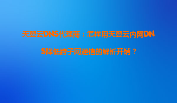 2025-08-29天翼云DNS代理商:如何利用天翼云内网DNS降低跨子网通信的解析开销 引言 在云计算环境中,跨子网通信是常见的业务场景,但传统的DNS解析方式可能因公网查询、递...