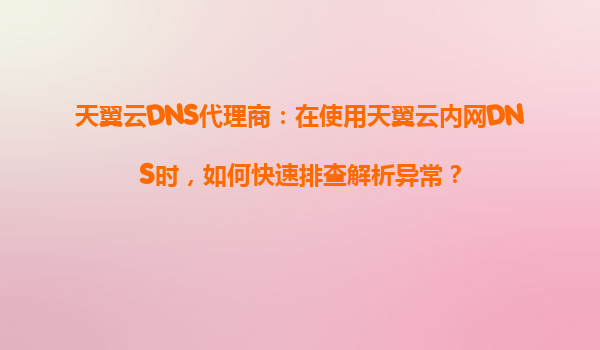 天翼云DNS代理商:使用内网DNS快速排查解析异常指南 一、天翼云内网DNS的核心优势 作为中国电信旗下的云计算服务品牌,天翼云内网DNS凭借以下优势为企业提供高效稳定的域名解析服务: 超低延...