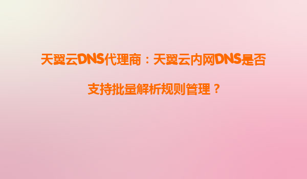 2025-08-29天翼云DNS代理商解析:天翼云内网DNS的批量解析规则管理能力与优势 一、天翼云内网DNS的核心功能 天翼云内网DNS作为企业级私有域名解析服务,专为云上资源提供...
