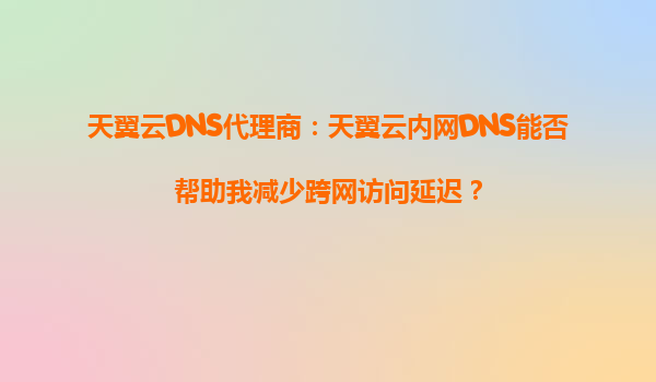 2025-08-28天翼云DNS代理商:天翼云内网DNS能否帮助我减少跨网访问延迟? 引言 在当今数字化时代,网络延迟问题一直是企业和个人用户关注的焦点。特别是在跨网访问时,延迟问题往往更加明显,影响用户体验和工作效率...
