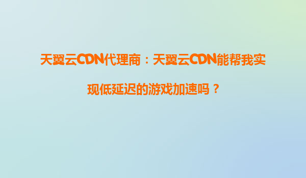 天翼云CDN代理商:天翼云CDN能帮我实现低延迟的游戏加速吗? 一、天翼云CDN的核心优势 天翼云CDN(内容分发网络)是中国电信旗下的云计算服务品牌,依托中国电信强大的基础设施和全球覆盖的网络节...