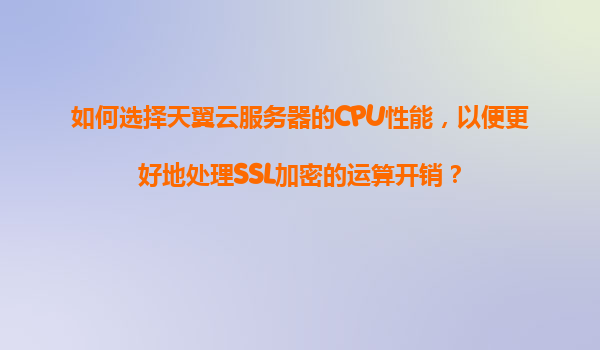 2025-11-04如何选择天翼云服务器的CPU性能以优化SSL加密运算开销 一、SSL加密的运算需求与CPU的关系 SSL/TLS协议广泛应用于网站、API等场景的数据加密传输,但SSL握手过程中的非对称加密(如RSA、E...