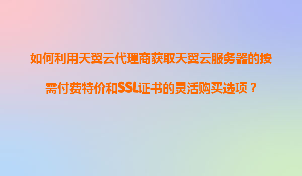 2025-11-04如何利用天翼云代理商获取天翼云服务器的按需付费特价和SSL证书的灵活购买选项? 一、天翼云与代理商的协同优势 天翼云作为中国电信旗下云计算品牌,在基础设施、安全性和本土化服务方面具有显著优势。...