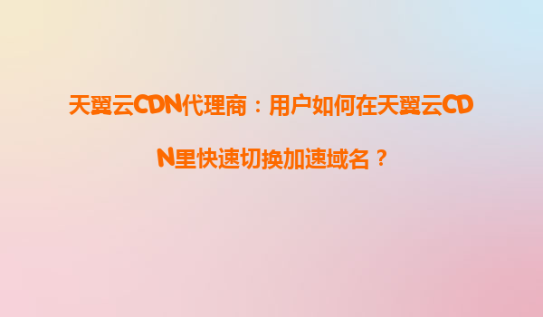 2025-08-27天翼云CDN代理商指南:用户如何在天翼云CDN里快速切换加速域名? 一、天翼云CDN的核心优势 天翼云CDN作为中国电信旗下的云计算服务,凭借其覆盖全国的节点资源、高可靠性和安全性,成为企业加速内...