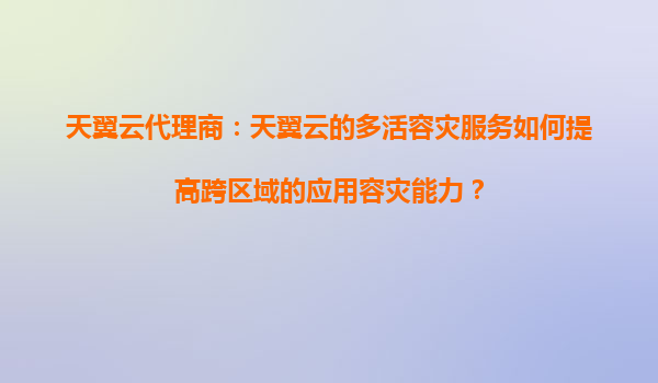 2025-08-22天翼云代理商:天翼云多活容灾服务如何提升跨区域应用容灾能力 在数字化转型的浪潮下,企业业务对云计算的需求日益增长,尤其是对高可用性和灾难恢复能力的关注度显著提升。跨区域的应用容灾能力成为企业业务连...