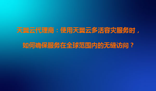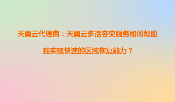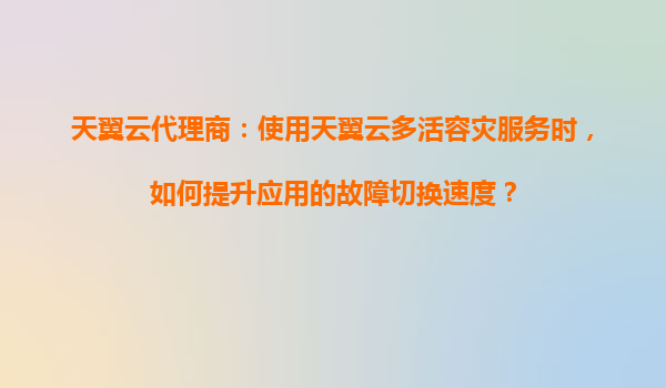 2025-08-22天翼云代理商指南:如何提升多活容灾服务的故障切换速度 前言 在当前数字化转型加速的背景下,企业业务的连续性和高可用性已成为核心需求。天翼云多活容灾服务凭借其强大的技术底蕴和覆盖全国的资源布局,成...