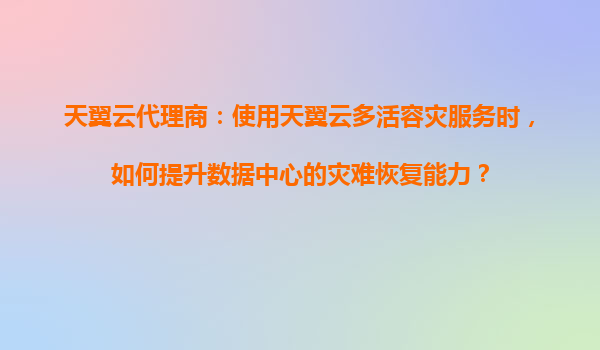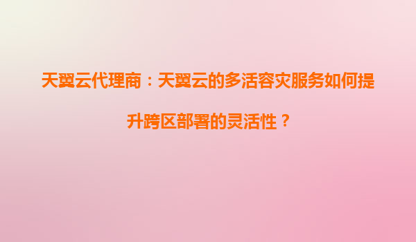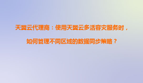2025-08-21天翼云代理商:使用天翼云多活容灾服务时如何管理不同区域的数据同步策略 在云计算时代,数据的高可用性和业务连续性成为企业核心诉求。天翼云作为中国电信旗下的云服务品牌,依托运营商级基础设施和...