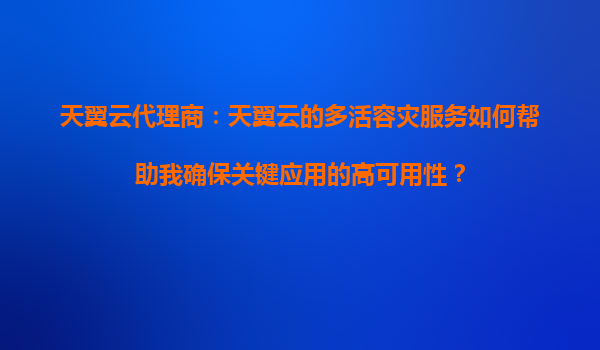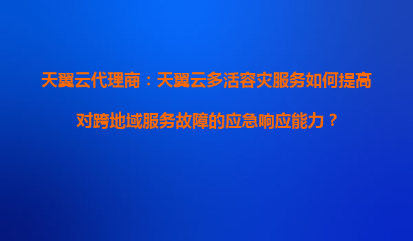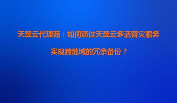 2025-08-21天翼云代理商:如何通过天翼云多活容灾服务实现跨地域的冗余备份? 一、天翼云多活容灾服务的核心优势 天翼云作为中国电信旗下的云计算品牌,凭借其强大的基础...