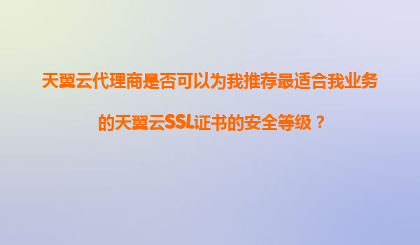 天翼云代理商如何精准推荐匹配业务需求的SSL证书安全等级 专业代理商的价值所在 天翼云认证代理商凭借对云安全产品的深度理解,能根据客户业务场景、数据敏感度及合规要求,提供SSL证书选型的一站式咨询服务...