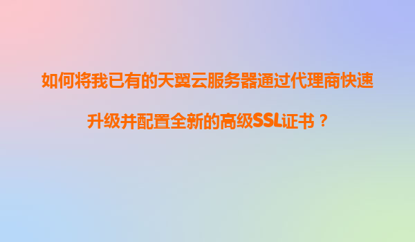 2025-11-04如何通过天翼云代理商快速升级服务器并配置高级SSL证书 一、为什么选择天翼云及代理商服务? 天翼云作为中国电信旗下云计算品牌,凭借央企背景和强大的基础设施,提供稳定、安全的云服务。通...
