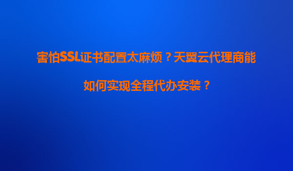 2025-11-03害怕SSL证书配置太麻烦?天翼云代理商如何实现全程代办安装 一、SSL证书配置的痛点 在数字化时代,网络安全已成为企业不可忽视的关键环节。SSL证书作为网站安全的基石,能够有...