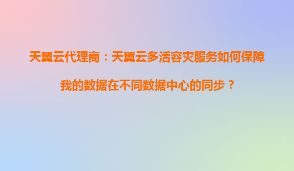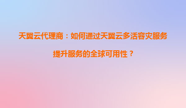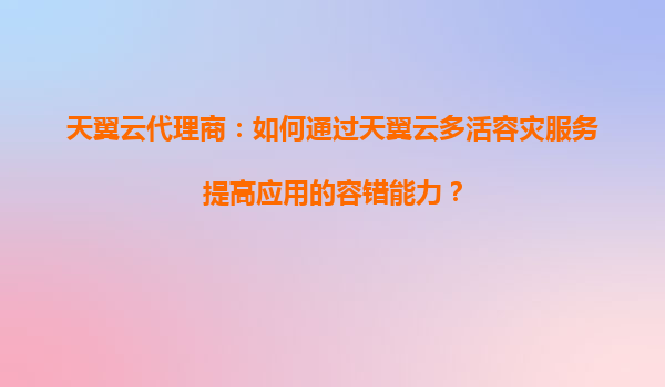 2025-08-20天翼云代理商:如何通过天翼云多活容灾服务提高应用的容错能力? 一、天翼云多活容灾服务的核心优势 天翼云作为中国电信旗下的云服务品牌,依托运营商级网络基础设施,其多活容灾服务具备以下显著优势: 全国骨...