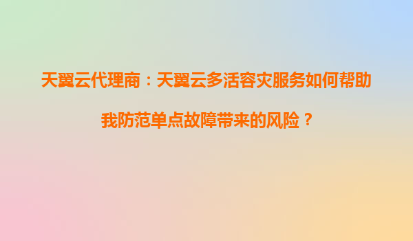 2025-08-20天翼云代理商:天翼云多活容灾服务如何帮助我防范单点故障带来的风险? 一、单点故障的风险与多活容灾的核心价值 单点故障是指系统中某一关键组件失效导致整体服务中断的风险,常见于传统IT架构中。对企业而言...