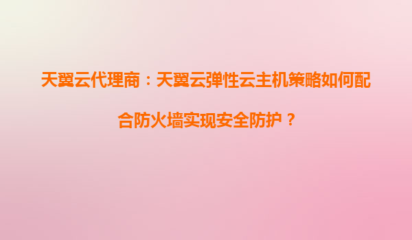 2025-08-19天翼云代理商:天翼云弹性云主机策略如何配合防火墙实现安全防护 一、引言 随着云计算技术的快速发展,企业对云主机的安全需求日益增强。天翼云作为国内领先的云服务提供商,其弹性云主机服务具有高性能、...