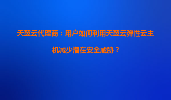 2025-08-19天翼云代理商:用户如何利用天翼云弹性云主机减少潜在安全威胁? 一、天翼云弹性云主机的核心安全优势 天翼云作为中国电信旗下云计算品牌,其弹性云主机在安全性方面具备以下差异化优势: 等保...