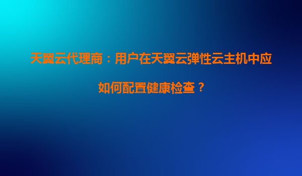 2025-08-19天翼云代理商指南:用户在天翼云弹性云主机中如何配置健康检查 一、天翼云弹性云主机的核心优势 天翼云作为中国电信旗下的云计算服务品牌,其弹性云主机(ECS)凭借以下优势成为企业上云...